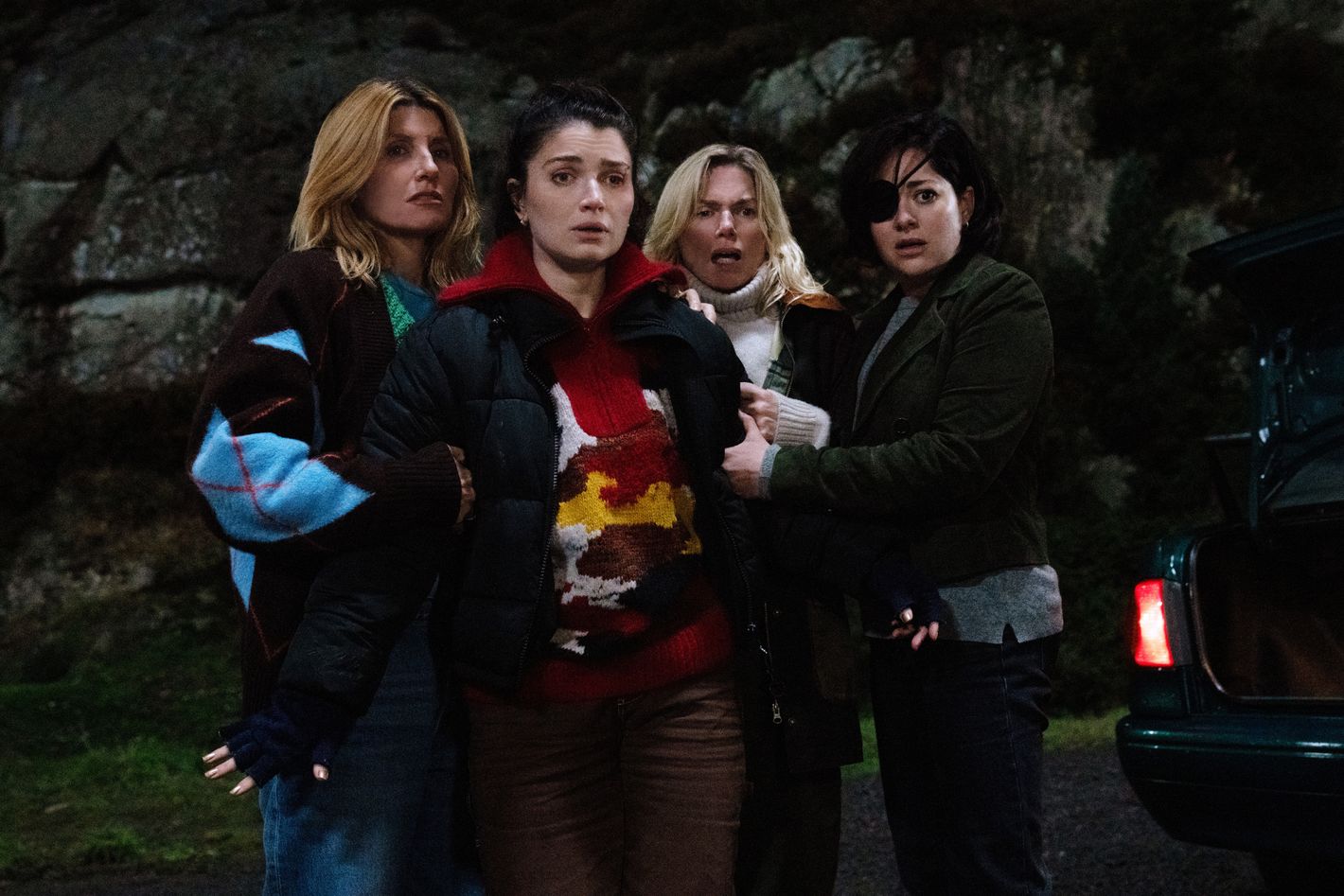 So, okay, let’s rewind again to the beginning of “Good Sisters,” in which the Garveys (minus Grace) appear to be up to some of their old murder-adjacent tricks. Unlike last season, this one doesn’t kick off by weaving between two different timelines, but it does give us this dark glimpse into a future in which Eva drives them all out to the cliffs to dispose of … well, something. Or someone? Whatever it is, it shows more signs of life than any of them are clearly expecting when they open the car trunk; the last we see of this flash-forward is them all running away screaming. Bless our Garvey girls; they’ve never been the slickest of criminals.