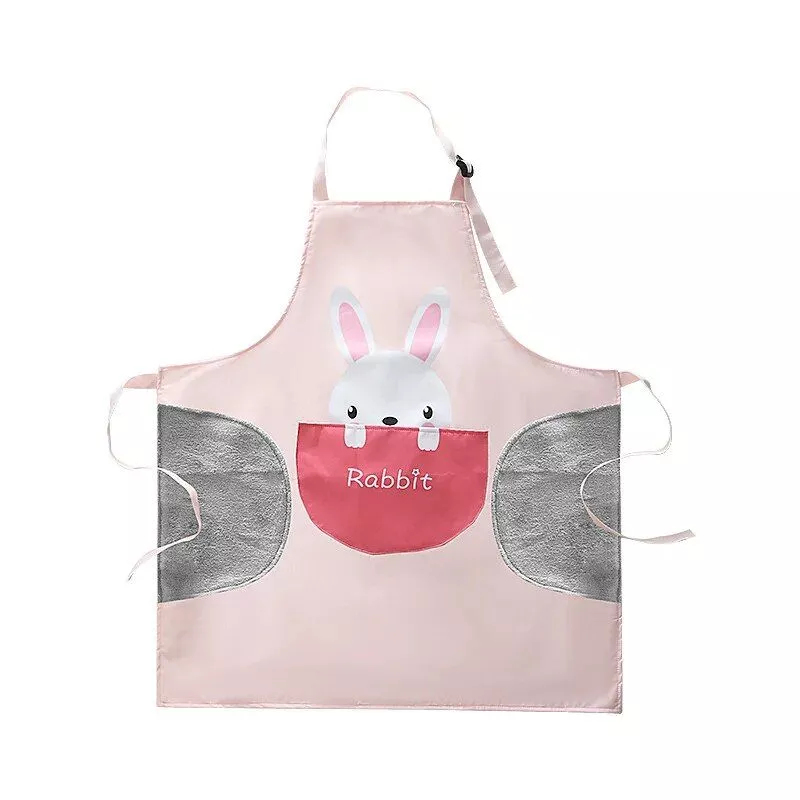 Charming Cartoon Animal Waterproof Apron with Big Pocket & Hand-Wiping Cloth
