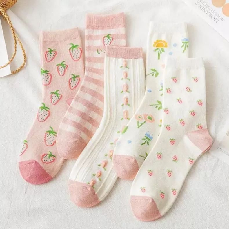 Step into a world where style meets comfort with our Charming Harajuku Kawaii Cotton Socks, adorned with delightful strawberry and floral patterns. Perfect for those who appreciate a touch of whimsy in their wardrobe, these socks are designed to bring a smile to your face and a spring to your step. Crafted from a soft cotton blend, they promise to keep your feet cozy and comfortable all day long.