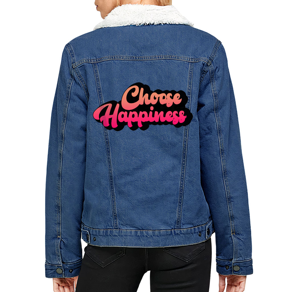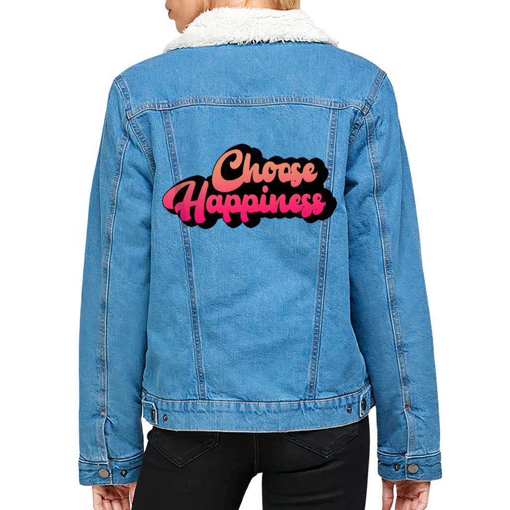 Choose Happiness Women’s Sherpa Denim Jacket – Positive Ladies Denim Jacket – Best Print Denim Jacket