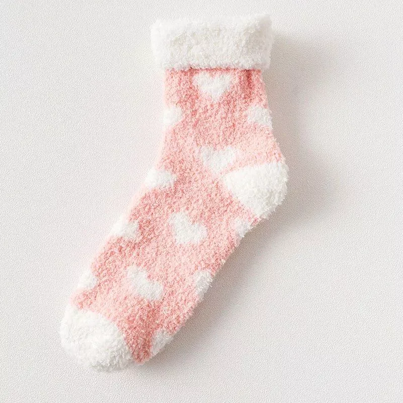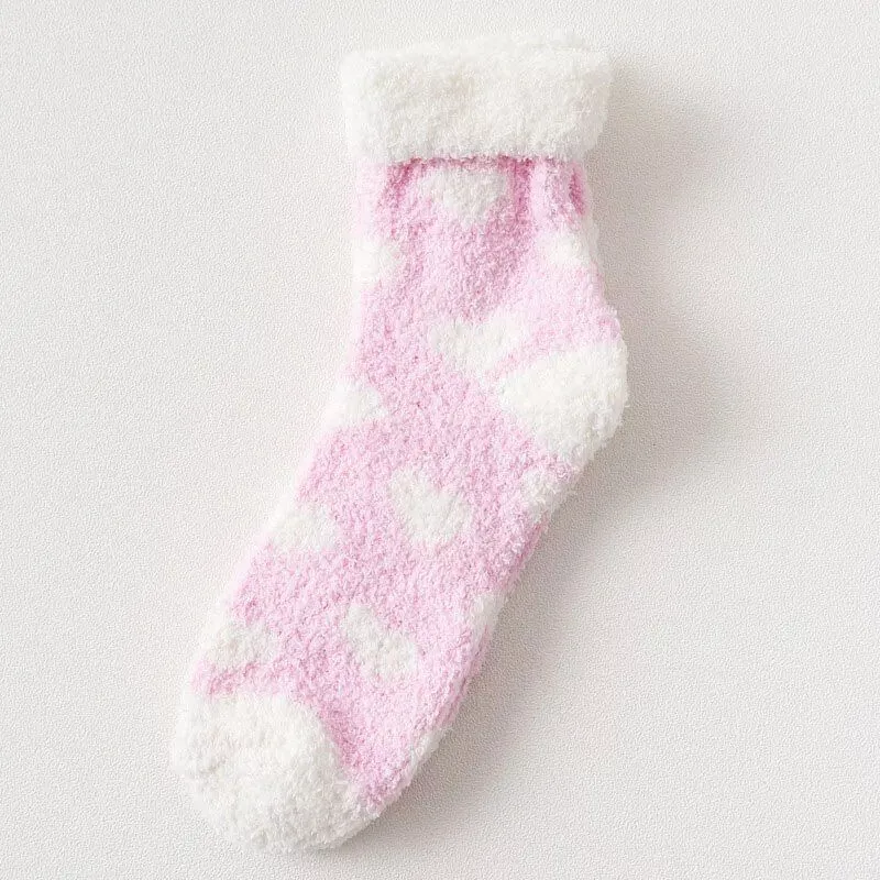Introducing our Cozy Heart Pattern Fuzzy Socks, the perfect blend of warmth, comfort, and style for the chilly seasons. Designed to keep your feet snug and warm, these thick cotton terry socks are not just a winter essential but a cute addition to your wardrobe. With a delightful heart pattern and a selection of candy colors, they add a touch of kawaii charm to any outfit. Whether you’re lounging at home or stepping out in the cold, these socks are your cozy companions.