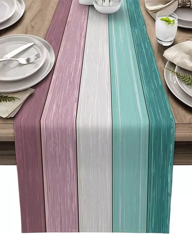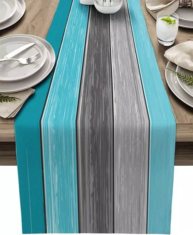 Introducing our Turquoise Blue-Green Wood Striped Linen Table Runner, a masterpiece of craftsmanship designed to elevate your home decor. This exquisite table runner, with its vibrant hues and sophisticated design, is the perfect addition to any dining area, making every meal a special occasion.