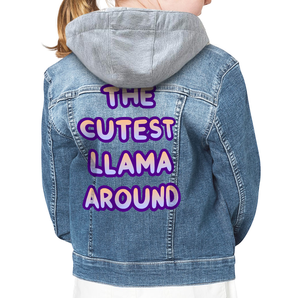 Cute Design Hooded Denim Jacket for Kids – Llama Jean Jacket – Graphic Denim Jacket for Kids