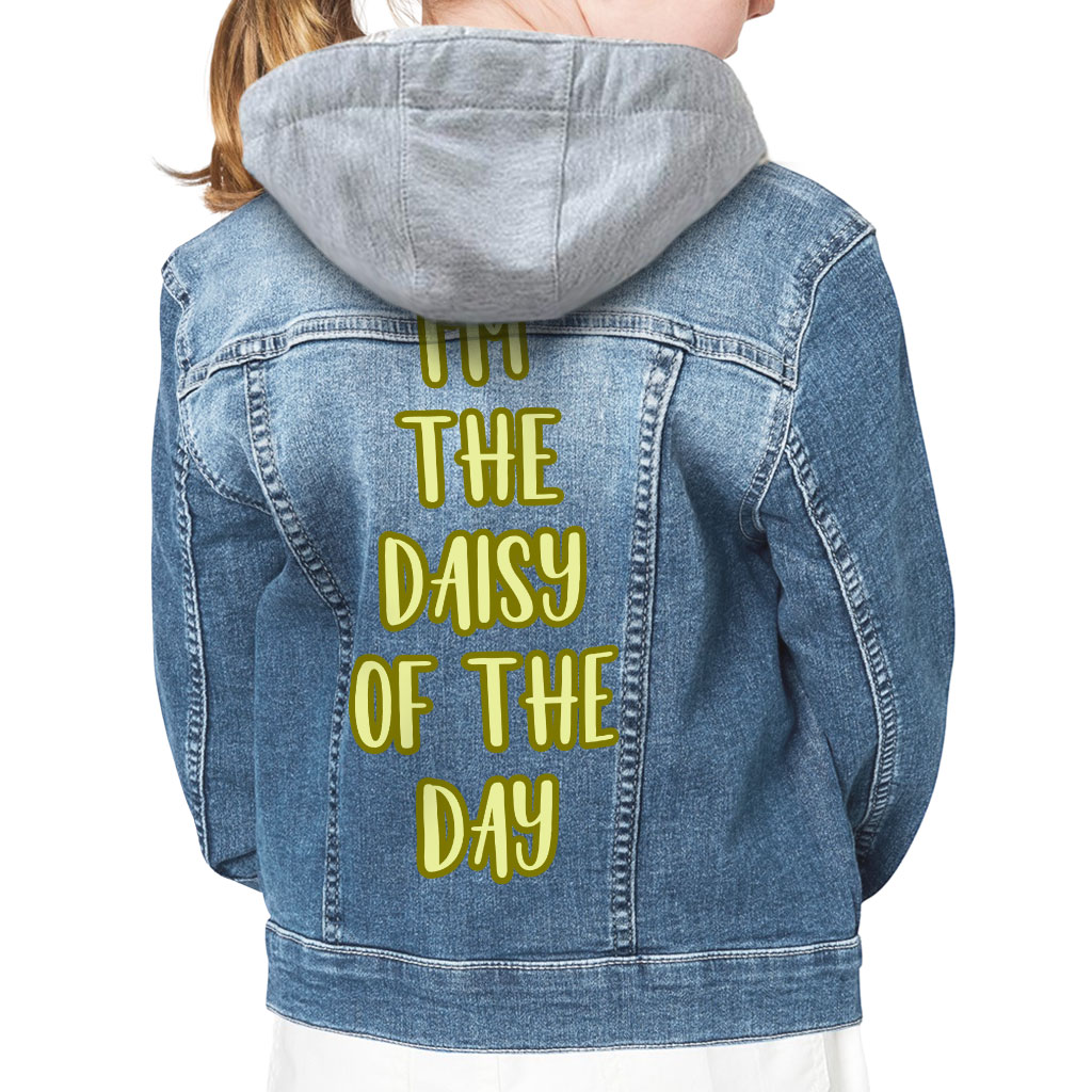 Cute Design Hooded Denim Jacket for Kids – Quote Jean Jacket – Cool Saying Denim Jacket for Kids