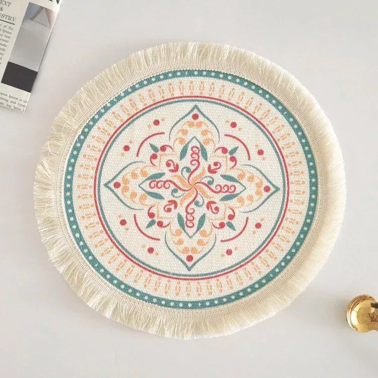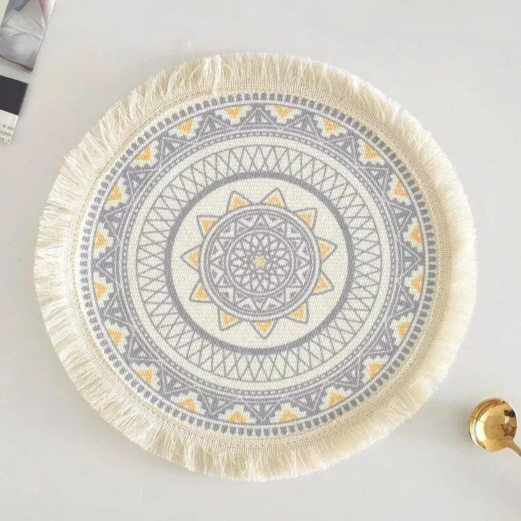 What sets our placemats apart is their eco-friendly composition and the timeless Boho style they bring to your home. The linen material not only ensures durability but also adds a natural, earthy touch to your table setting. The round shape seamlessly fits into various dining environments, making your meals more enjoyable and aesthetically pleasing.