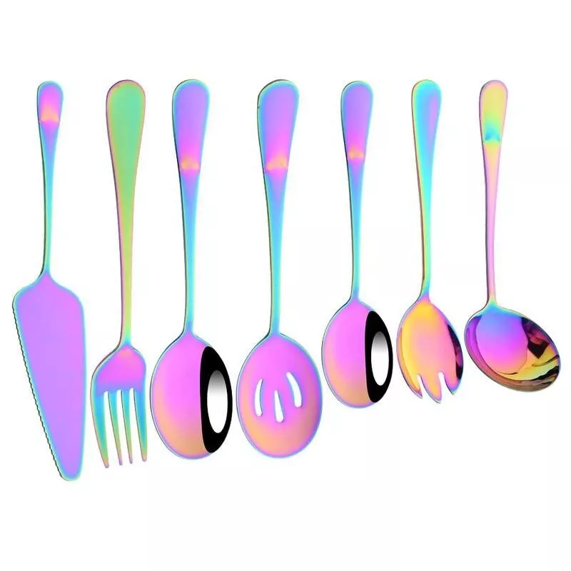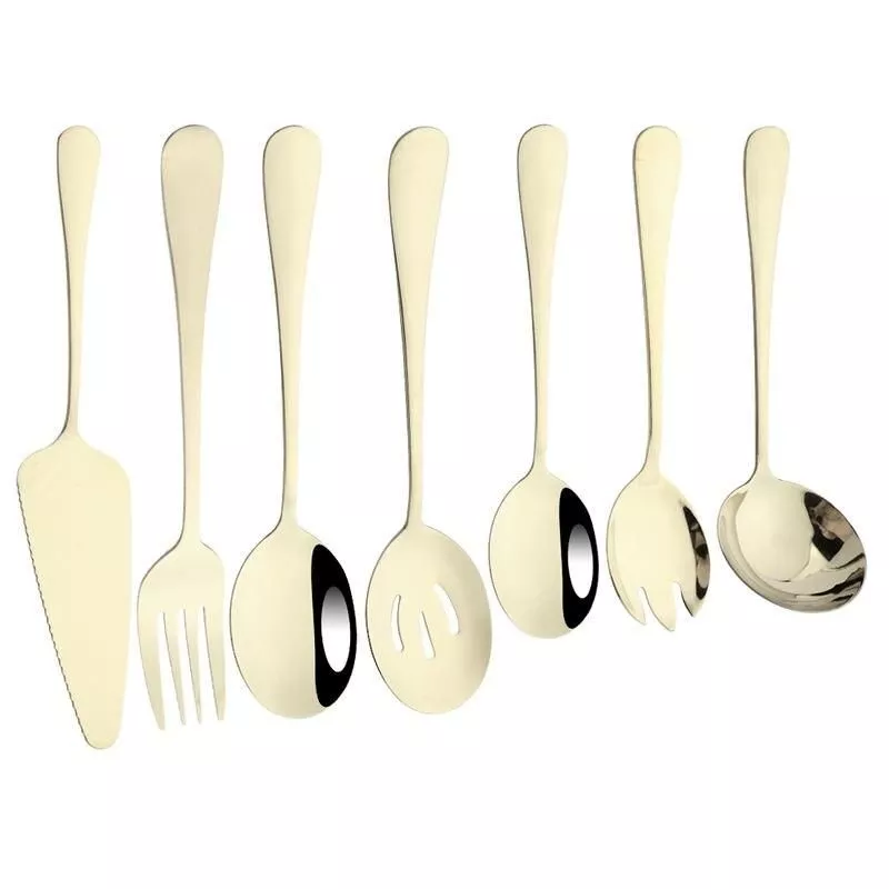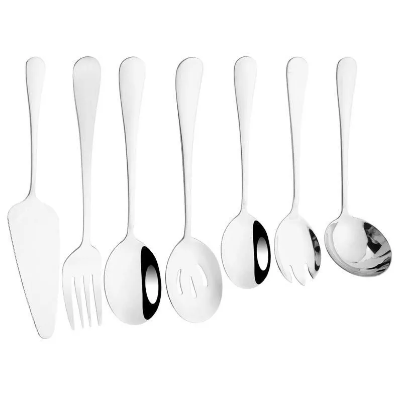 • Multi-purpose Use: Includes soup spoon, colander spoon, service spoon, salad fork, and cake spatula for diverse dining needs.