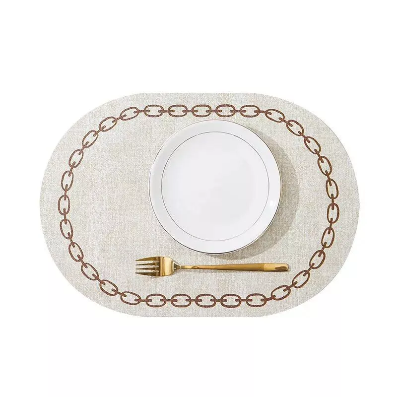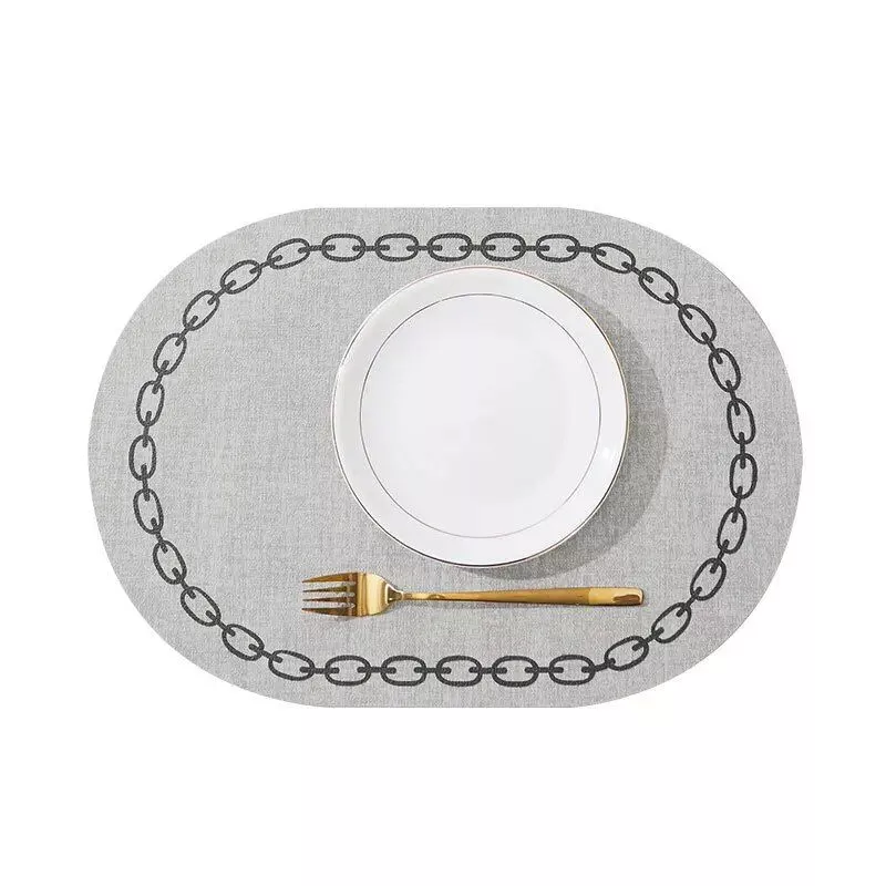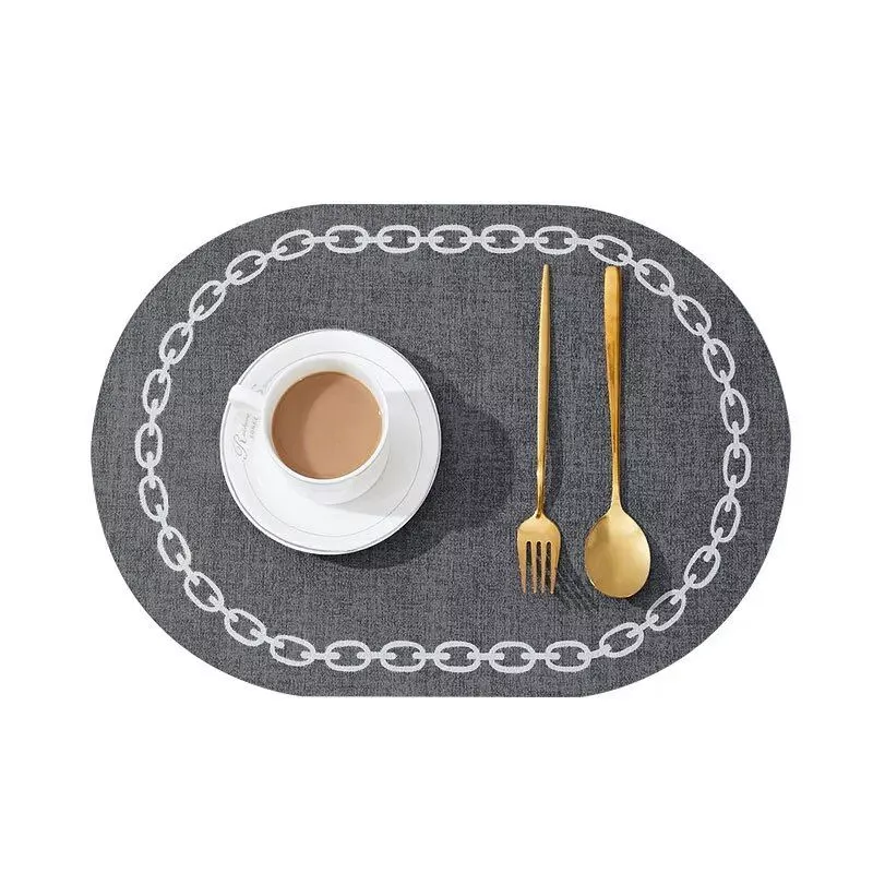 Our placemats boast a unique linen texture printing, offering an exquisite visual appeal that complements any table setting. With a choice of rectangular or elliptical shapes, these placemats fit seamlessly into both traditional and contemporary dining spaces. Their solid pattern and European style add a touch of class to your meals.