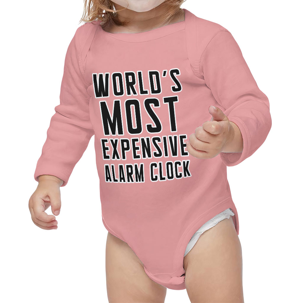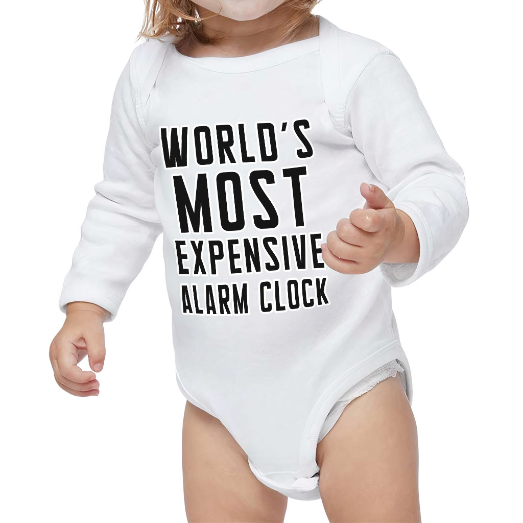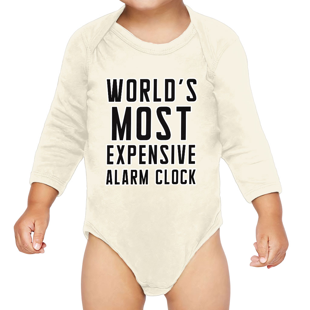 Expensive Alarm Clock Baby Long Sleeve Onesie is made of 100% Cotton which makes it soft on the skin, breathable, lightweight, and comfortable to wear. Made of high-end materials, with sturdy stitching and non-fade colors, these bodysuits are extra-durable.