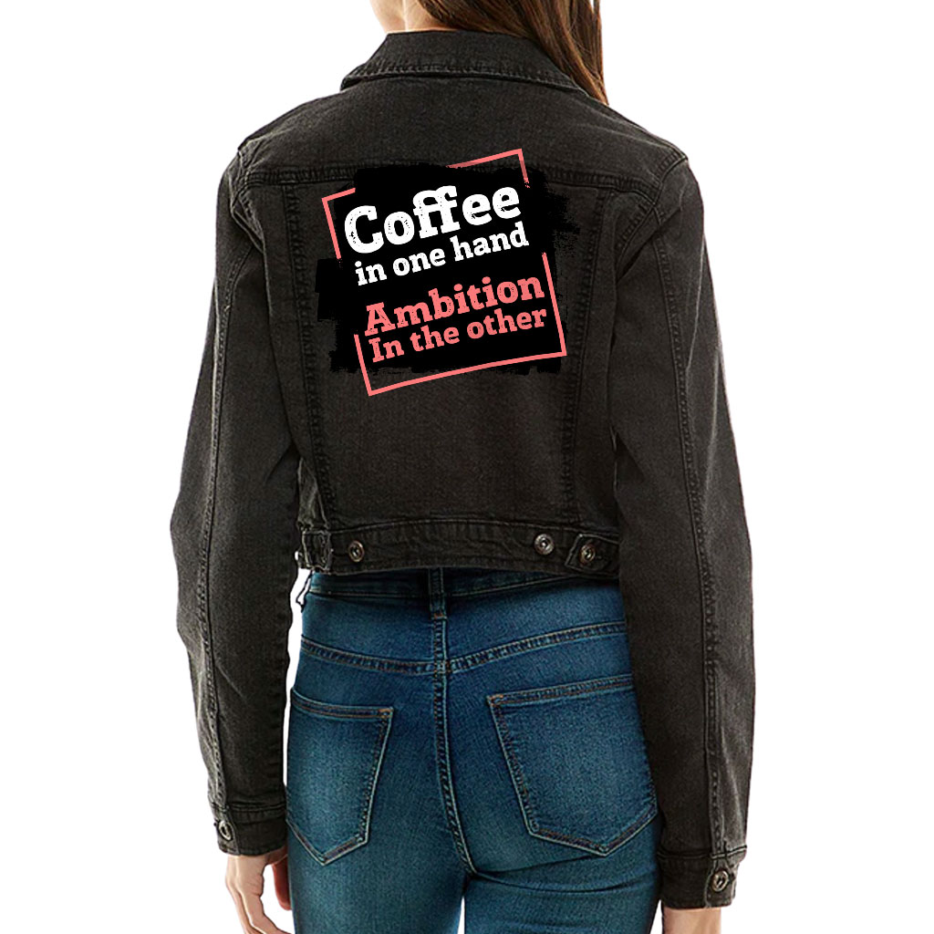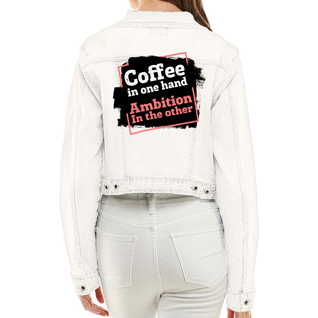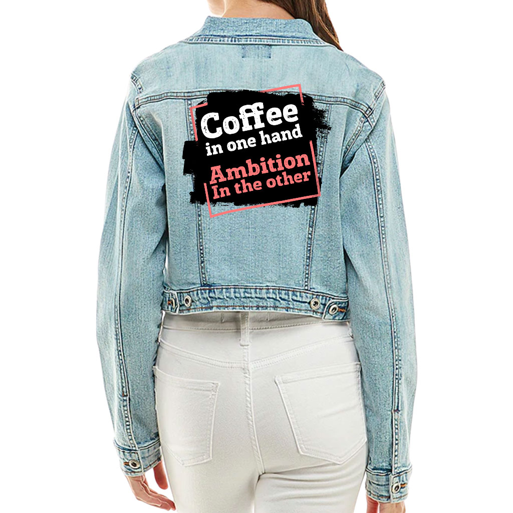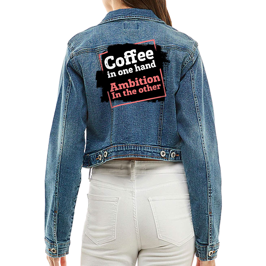 Funny Saying Cropped Ladies Denim Jacket – Printed Women’s Denim Jacket – Themed Denim Jacket