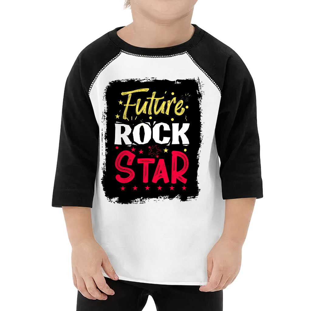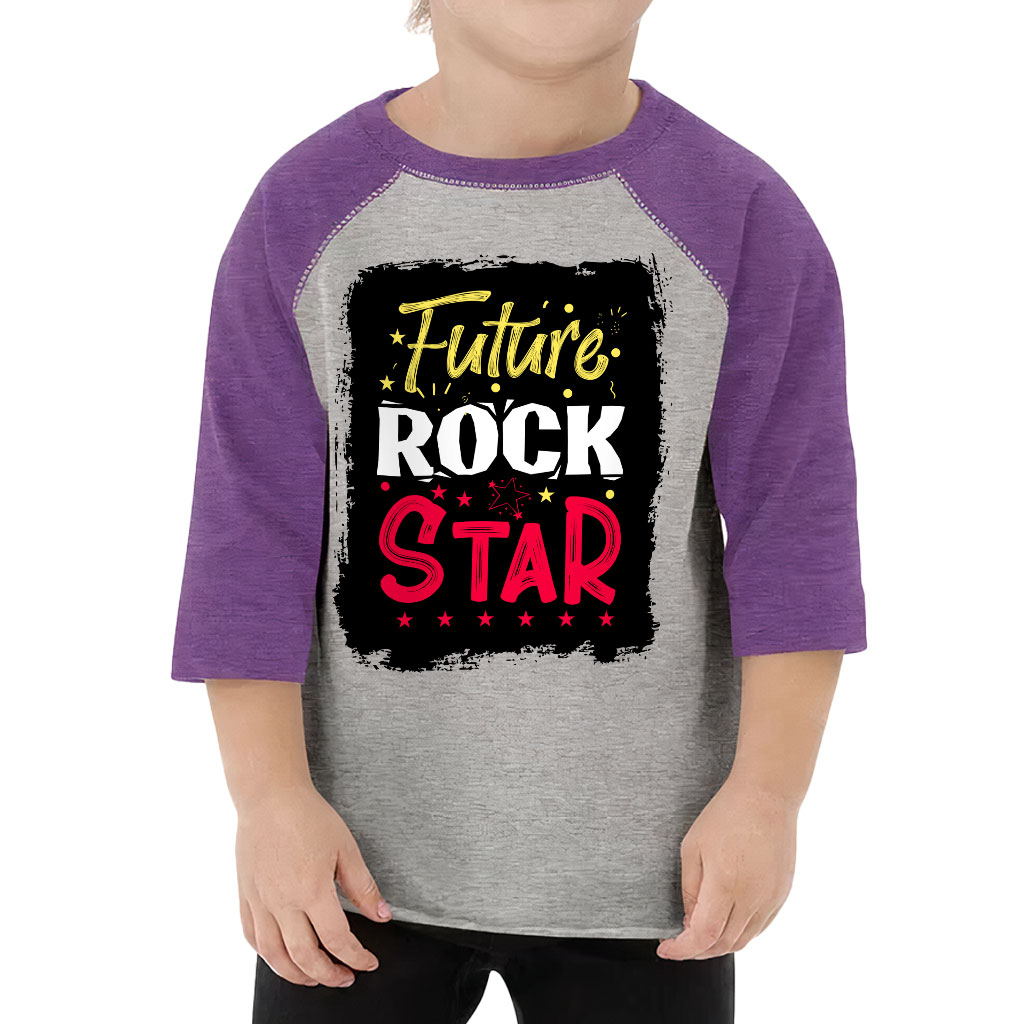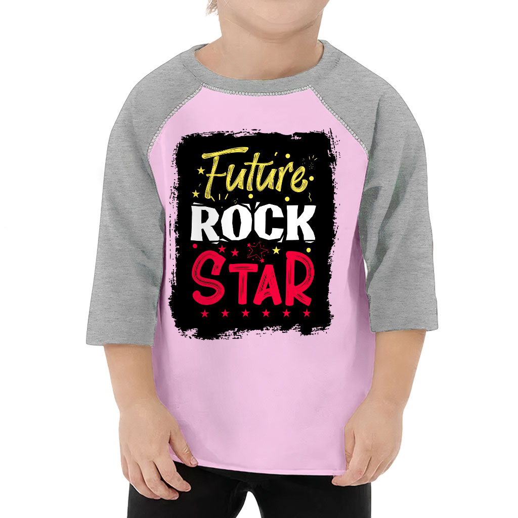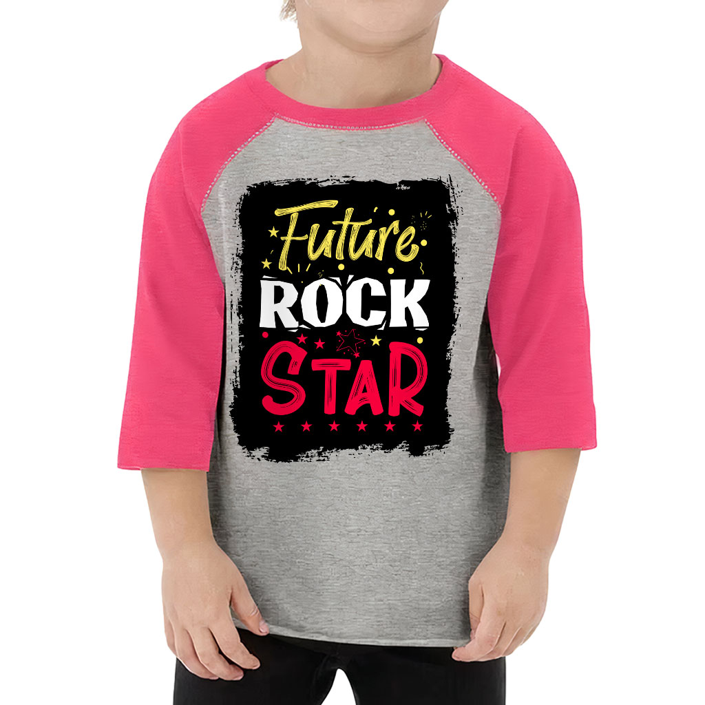 Future Rock Star Toddler Baseball T-Shirt – Graphic 3/4 Sleeve T-Shirt – Cool Trendy Kids’ Baseball Tee