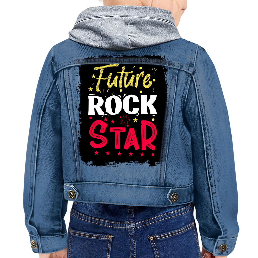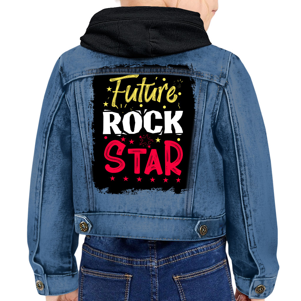 Future Rock Star Toddler Hooded Denim Jacket – Graphic Jean Jacket – Cool Trendy Denim Jacket for Kids