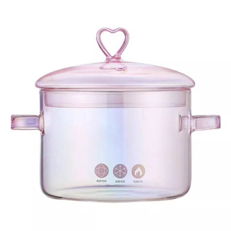 Our pink glass pot boasts a range of features that set it apart from the ordinary. Crafted from high-quality, heat-resistant borosilicate glass, it’s designed to withstand high temperatures, making it perfect for a variety of cooking methods. The pot’s transparent design not only adds a touch of sophistication but also allows you to monitor your cooking with ease. The binaural design ensures easy handling and safe pouring, while the bear-shaped pot cover adds a unique, playful touch.