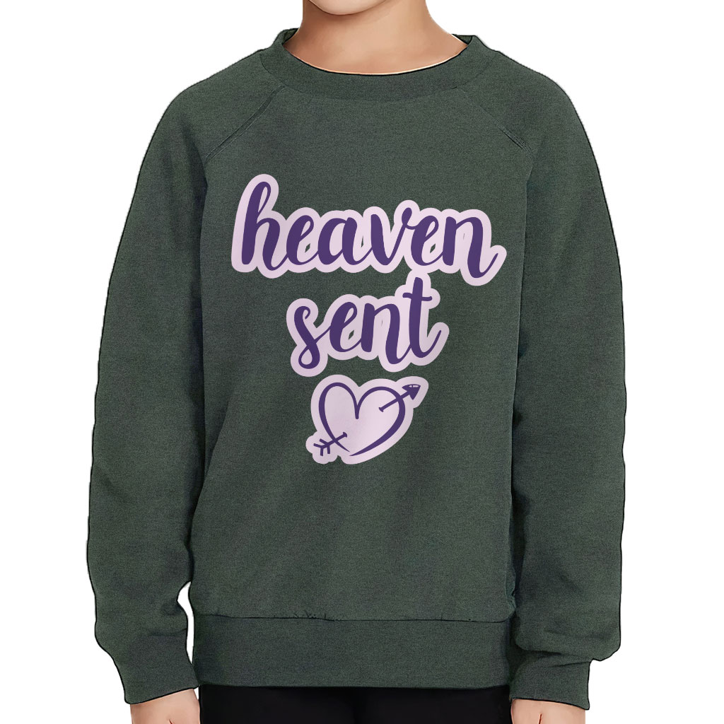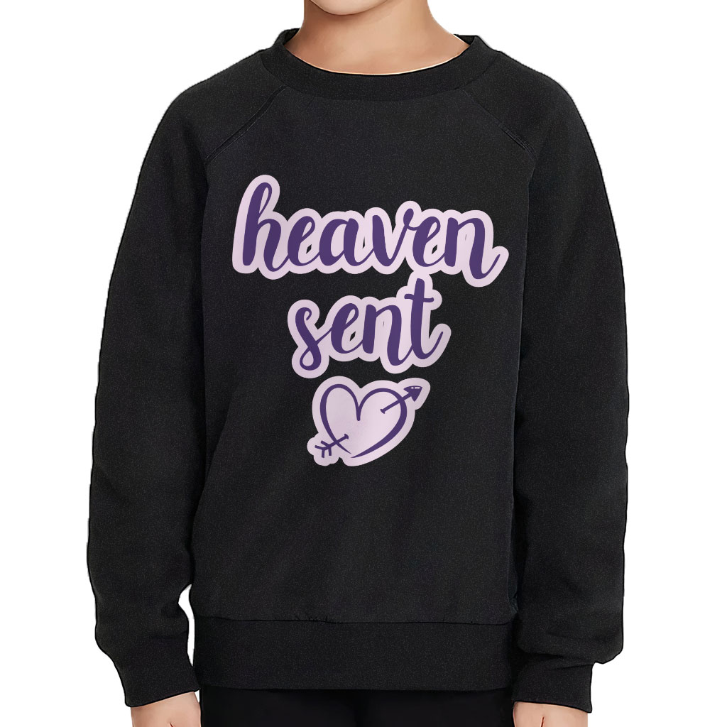 Heaven Sent Toddler Raglan Sweatshirt – Angel Sponge Fleece Sweatshirt – Heart Print Kids’ Sweatshirt