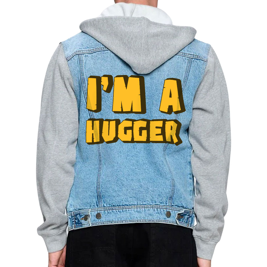 I am a Hugger Men’s Denim Jacket – Cute Jacket With Fleece Hoodie – Best Design Jacket for Men