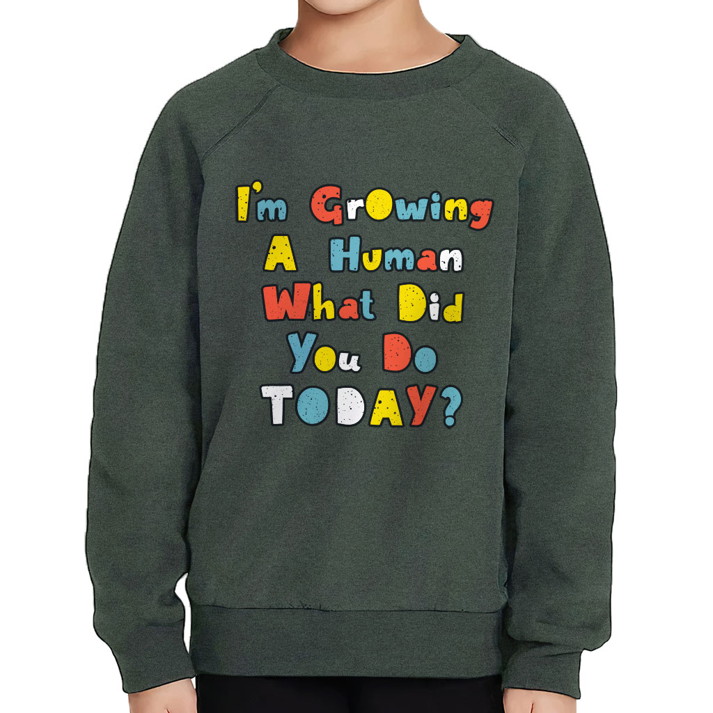 I’m Growing a Human Toddler Raglan Sweatshirt – Colorful Sponge Fleece Sweatshirt – Themed Kids’ Sweatshirt