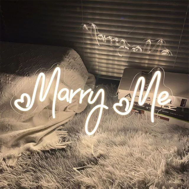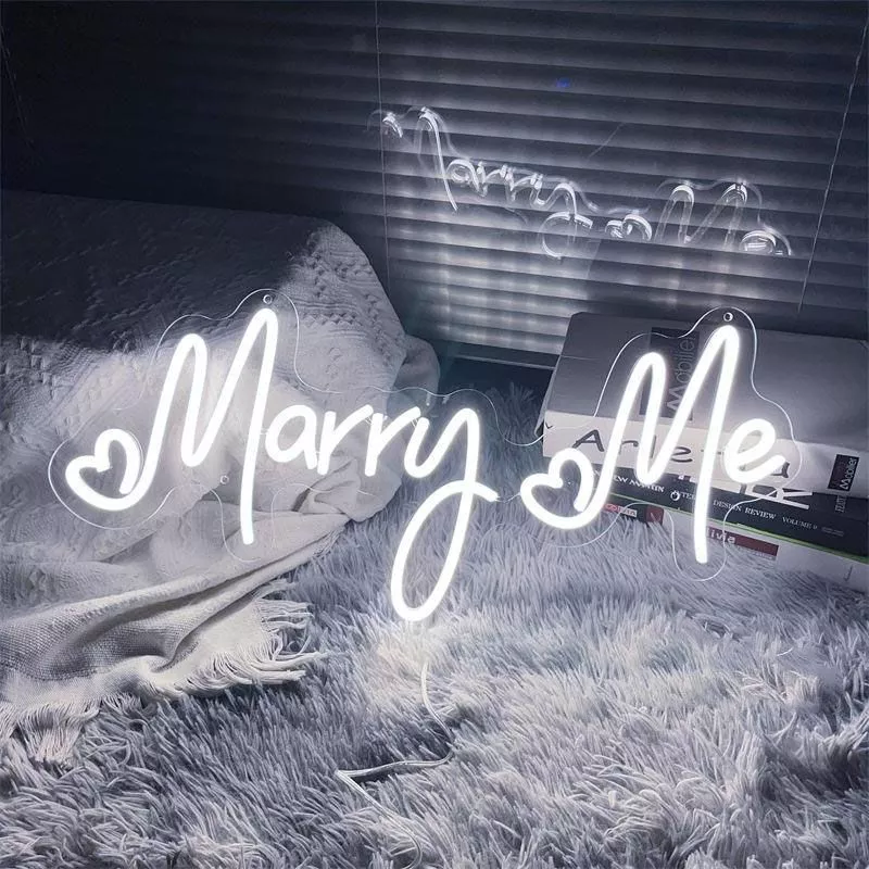 Our LED Neon “Marry Me” Sign is not just a decoration; it’s a statement of love, a beacon of happiness, and a memorable way to mark your special occasion. With its beautiful glow, customizable colors, and easy installation, it’s the perfect way to express your feelings and create unforgettable moments. Whether it’s for a proposal, wedding, or simply to add a romantic touch to your home, this neon sign will bring warmth, love, and joy to any setting.