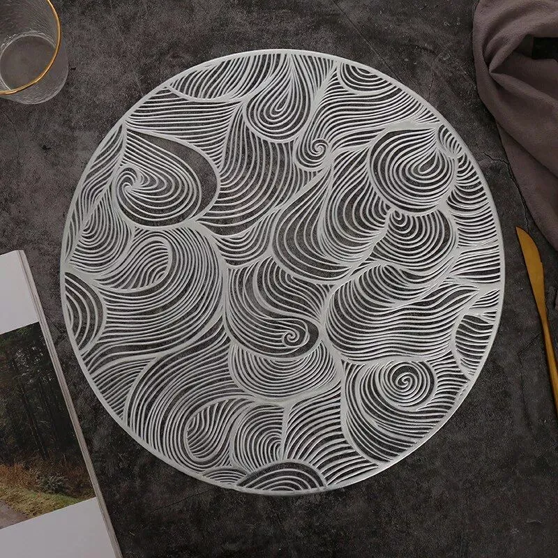 Introducing our Modern Round PVC Placemat, a perfect blend of style and functionality for your dining table. Designed to elevate your dining ambiance, this placemat is a must-have for those who love to blend practicality with elegance. The intricate hollow design with hot gold accents adds a touch of light luxury to every meal.