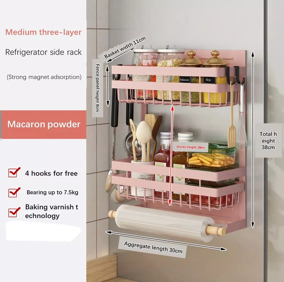 This shelf is not just a storage option; it’s a lifestyle upgrade. It’s perfect for those who love to cook but struggle with limited counter space. The tiered design allows for clear visibility and easy access to spices, oils, and other cooking essentials. It’s also ideal for organizing light kitchen tools, towels, and even decorative items, transforming cluttered spaces into neatly organized zones. Whether attached to a refrigerator, washing machine, or filing cabinet, this versatile shelf stands out for its strength, holding up to 20 kg without wavering.
