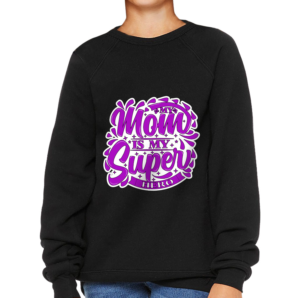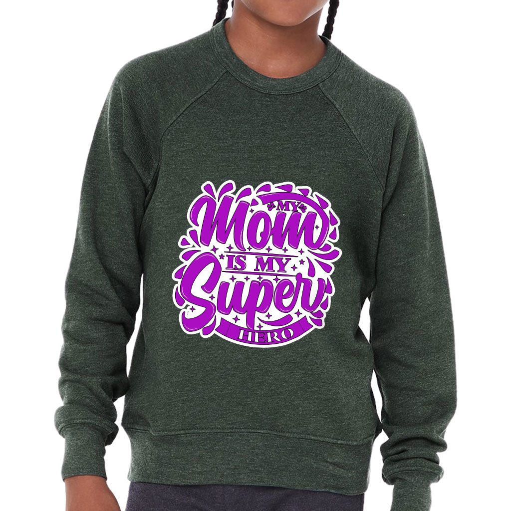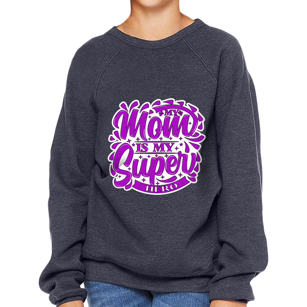 My Mom is My Superhero Kids’ Raglan Sweatshirt – Best Design Sponge Fleece Sweatshirt – Themed Sweatshirt