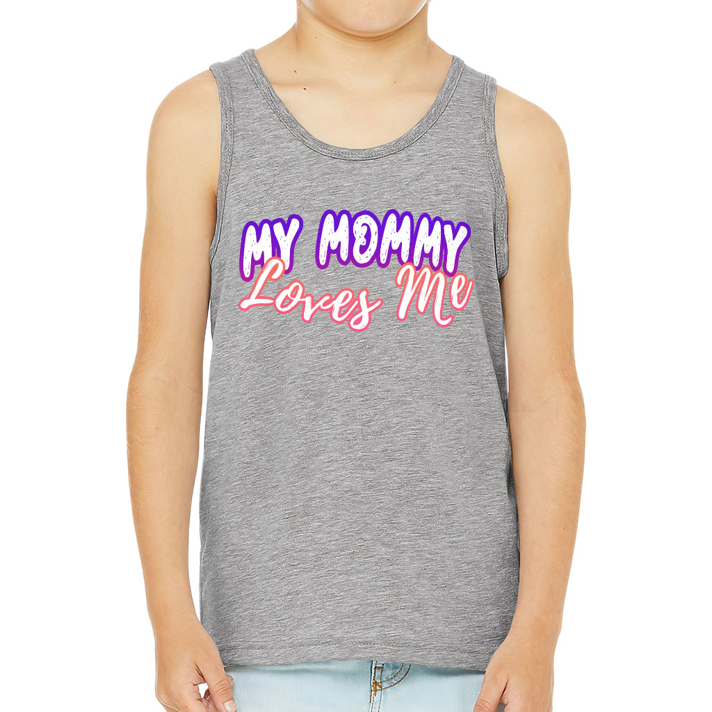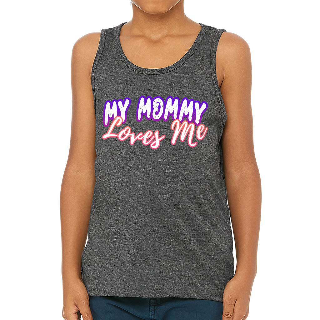 My Mom Loves Me Kids’ Jersey Tank – Kawaii Sleeveless T-Shirt – Themed Kids’ Tank Top