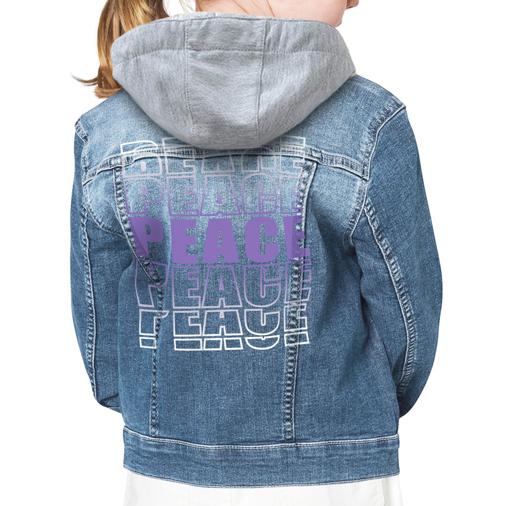 Peace Hooded Denim Jacket for Kids – Trendy Jean Jacket – Graphic Denim Jacket for Kids
