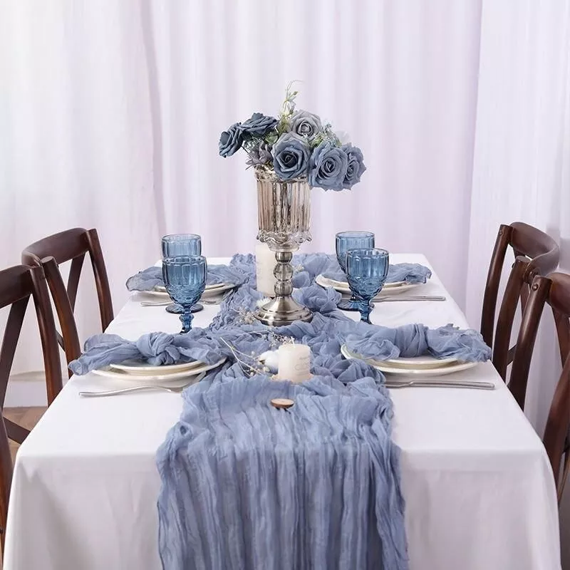 Our table runner is crafted from 100% high-quality polyester, ensuring durability and ease of care. The unique gauze crepe texture brings a natural, organic feel to your table, complementing any rustic or farmhouse decor. Available in multiple sizes, including 90x180cm, 90x340cm, and 90x400cm, with a 50x50cm napkin cloth option, it’s designed to fit a variety of table dimensions.