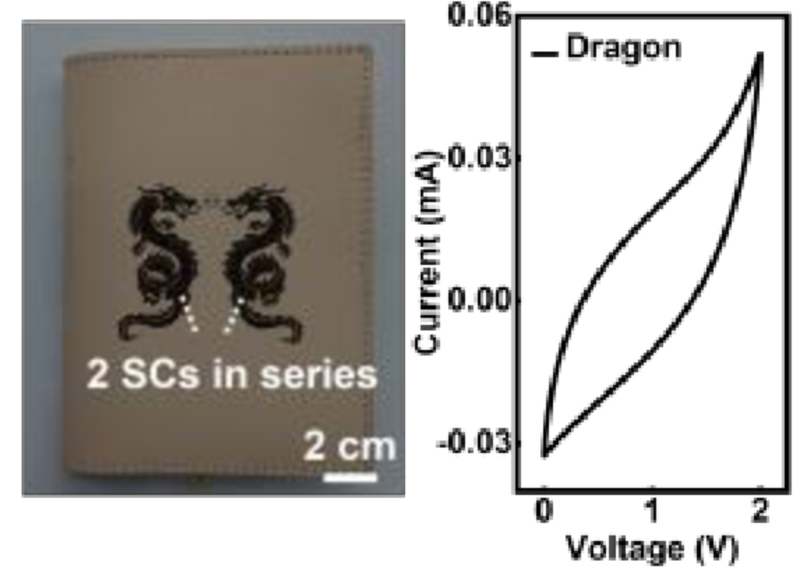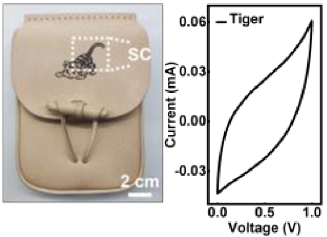 The team did not stop at standard shapes. They made patterned microsupercapacitors in forms including a tiger, a dragon and a rabbit, each built directly onto leather items.