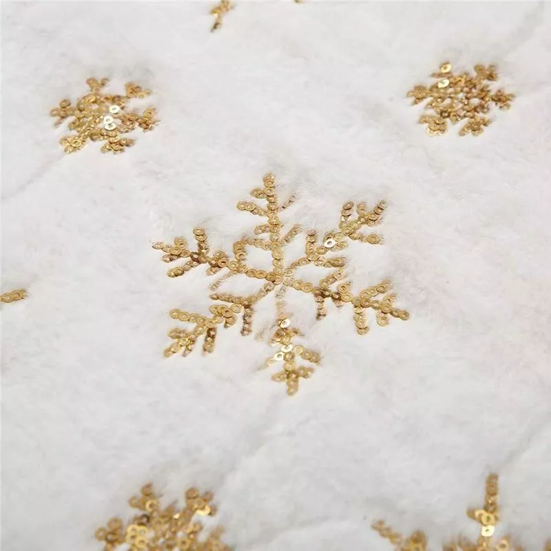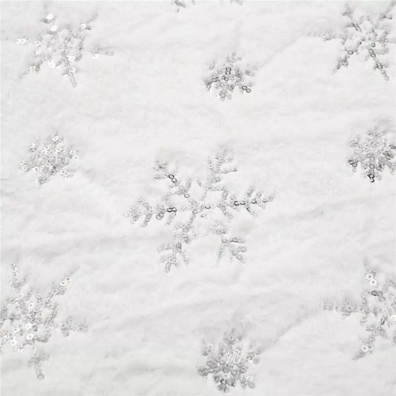 Crafted with meticulous attention to detail, this table runner features elegant sequin snowflakes embroidered onto a luxurious white faux fur background. The sophisticated knitted technique ensures durability and long-lasting beauty, while the polyester and cotton blend provides a soft, tactile experience. Customized to fit your unique style, it measures 183 x 38 cm (6 x 1.25 ft), making it a versatile choice for various table sizes.