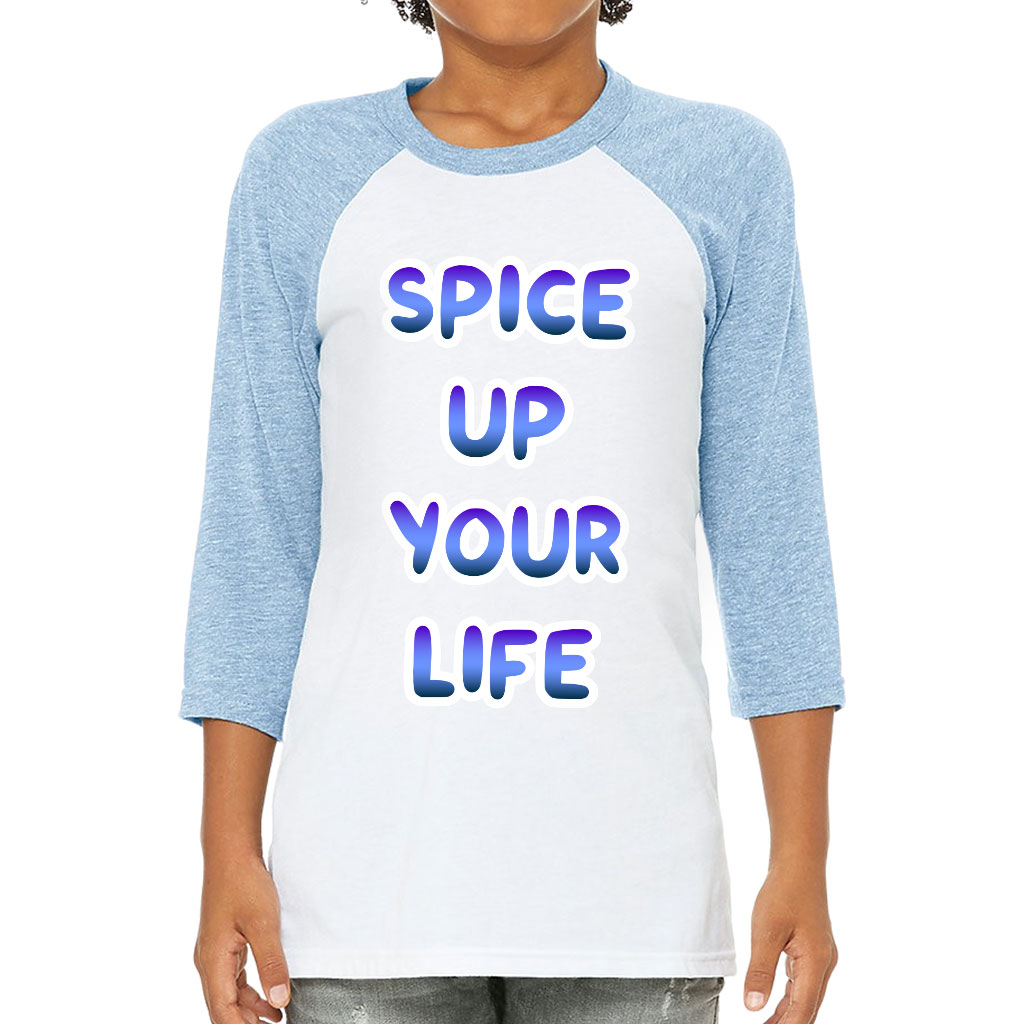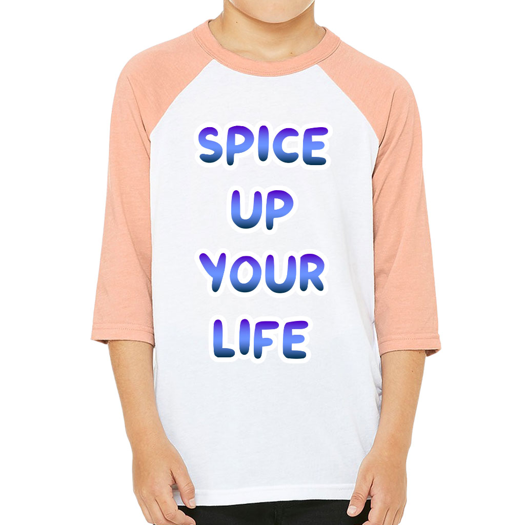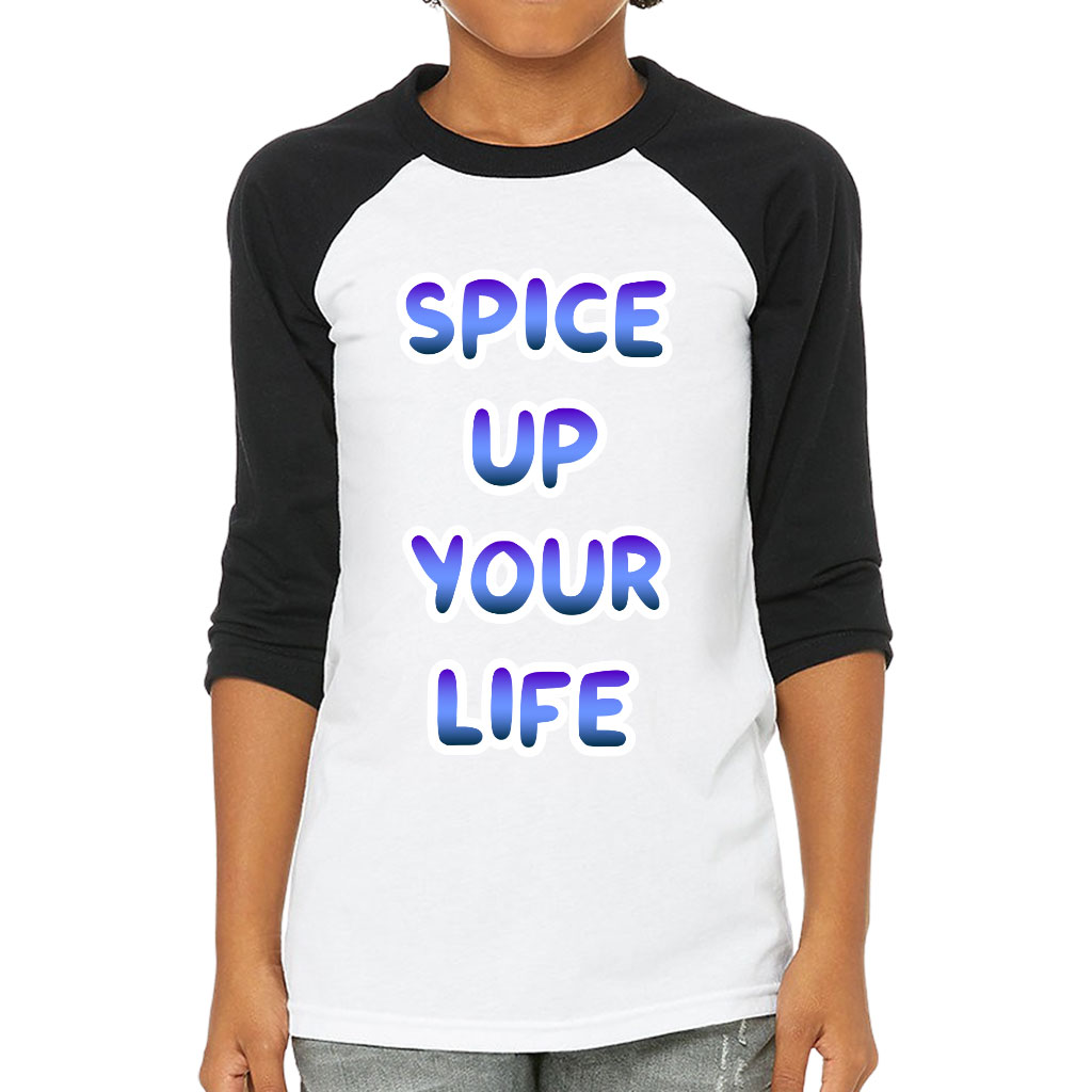 Spice Up Your Life Kids’ Baseball T-Shirt – Motivational 3/4 Sleeve T-Shirt – Quote Baseball Tee