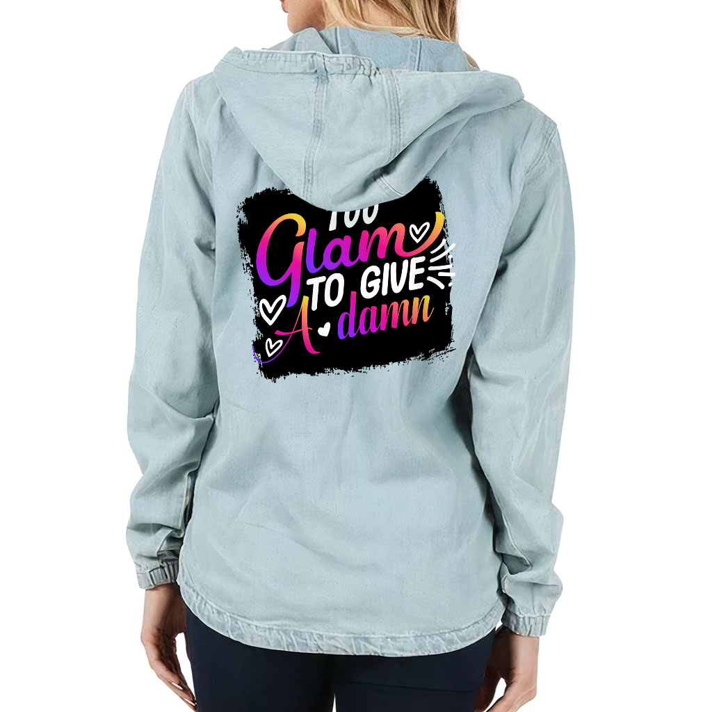 Be ready for any event with this fashionable hoodie top. Too Glam to Give a Damn Women’s Denim Jacket with Hoodie can be worn anywhere and everywhere from casual settings, like running errands, dog walking, lounging at home, or working out, to dressier occasions such as weekend brunch, nights out in the city, or movie night with friends.