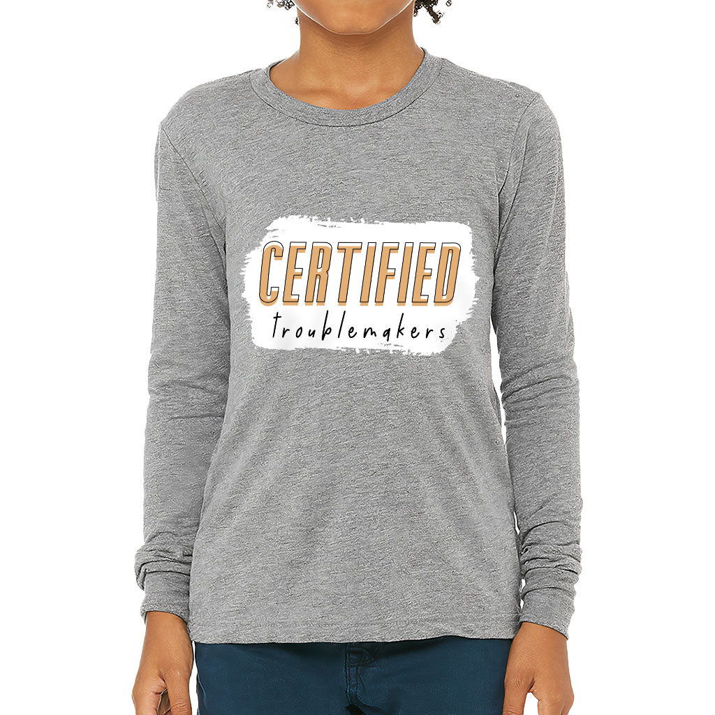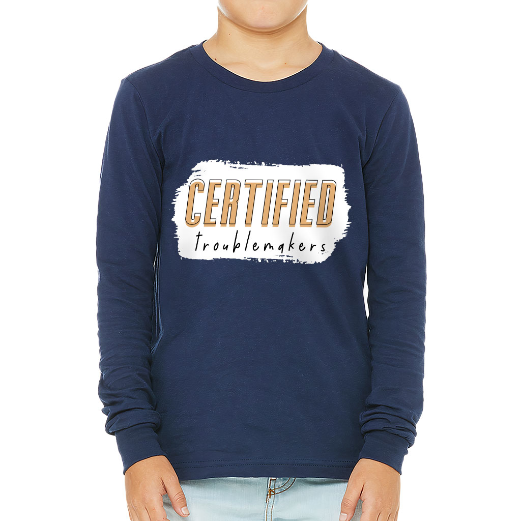 Trouble Maker Kids’ Long Sleeve T-Shirt – Funny Design T-Shirt – Printed Long Sleeve Tee