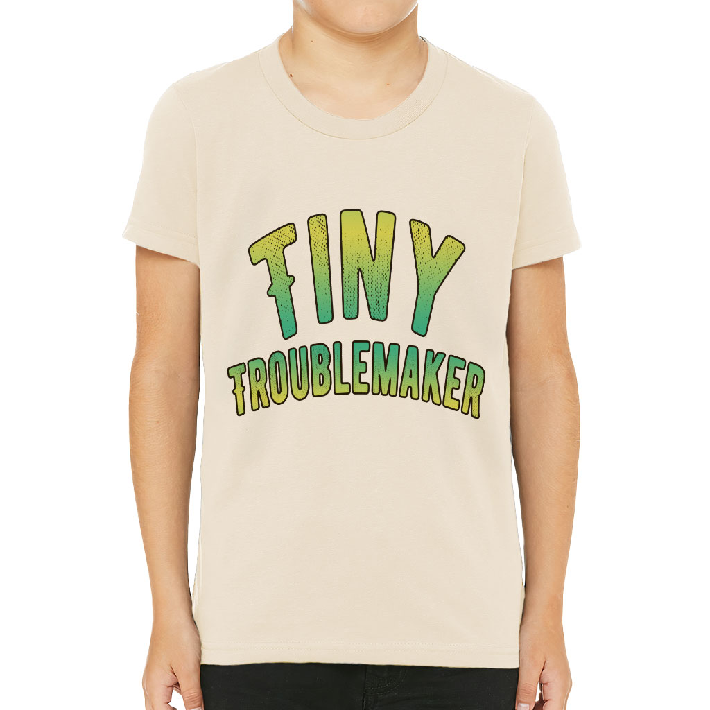 Troublemaker Kids’ T-Shirt is no ordinary piece of clothing. Its crew neck and short