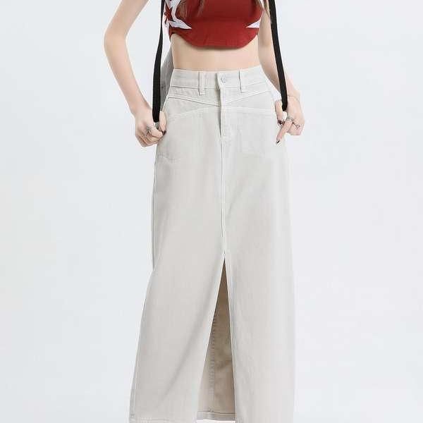 Our White High Waist Long Denim Skirt boasts a classic mid-calf length complemented by a modern straight cut and a sultry side split, adding a touch of allure to your every step. The solid pattern exudes a simplicity that makes it a breeze to pair with your favorite tops. Crafted from pure cotton denim, this skirt is a nod to quality and comfort, ensuring you feel fabulous with every wear.